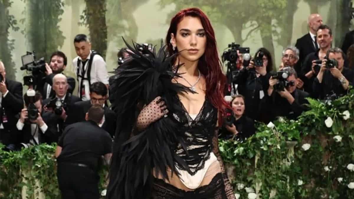 Dua Lipa didn’t quite cover the theme of the 2024 Met Gala too well, but whatever she was going for, she did it well. She arrived in a Marc Jacobs vampire-style black lace outfit, paired with a white corset and lots of black feathers. She paired the look with Tiffany & Co. diamond jewelry.