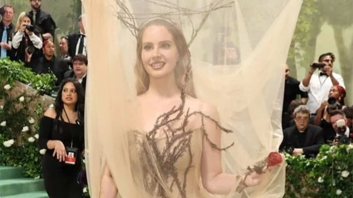 Lana Del Rey showed up in a look similar to that of an Alexander McQueen style from fall 2006, but with its own unique twist. She wore a full-length silk corseted gown with hand crafted hawthorn branches, as well as a sheer tulle covering over her head, held up by the branches. She tunes her style toward the nature side of the theme, and did it so well.