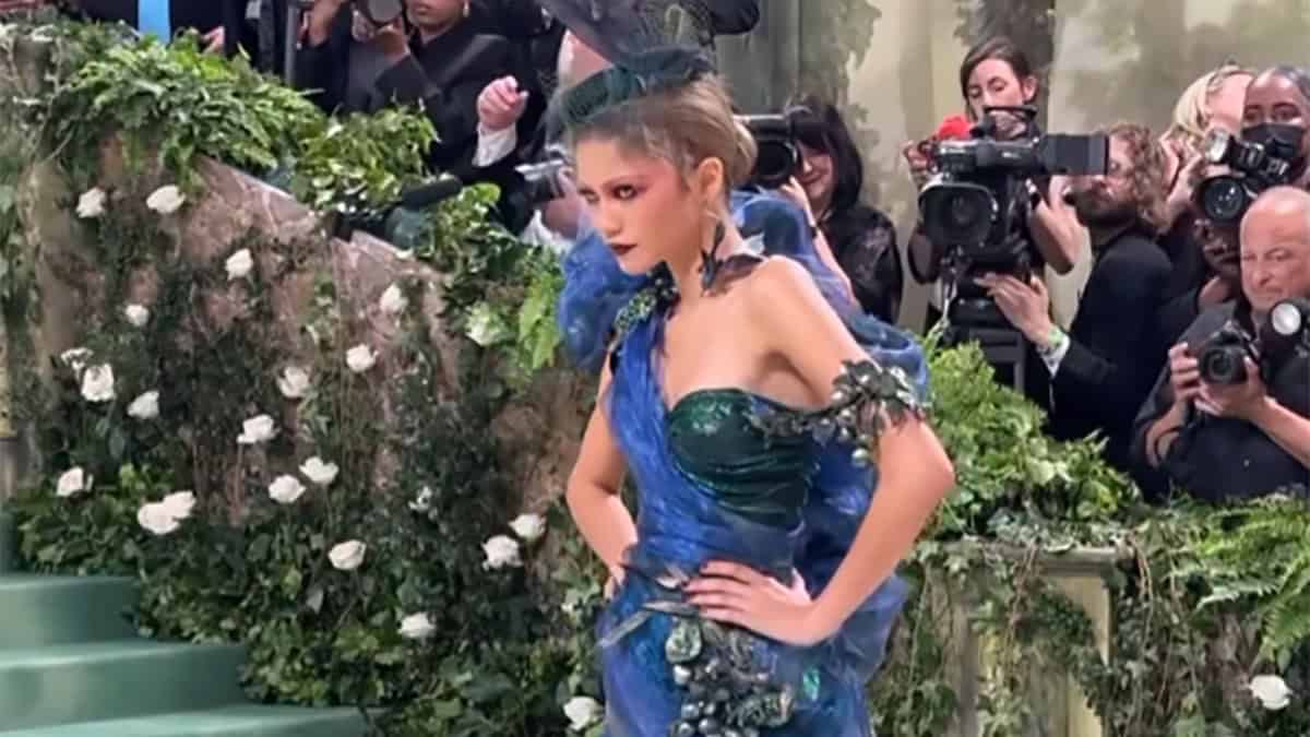 Zendaya, as always, absolutely wowed us with her whimsical blue and green gown this year. The co-chair for the 2024 Met Gala wore a John Galliano gown. She paired the look with flowing Tulle as well as hummingbird and berry accents to really dive into the Garden of Time dress code. She pairs the look with red-toned makeup and a tulle netting headpiece.