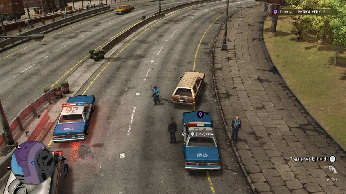 The team at Fallen Tree Games Ltd, the makers of The Precinct, did a great job of trying to honor neo-noir crime movies in this sandbox. Mainly, as we take on the role of the new rookie, we meet a peculiar and colorful team of colleagues that, although they follow the typical characters in a police movie, have a unique touch. For example, we have the figure of the “mentor,” and although this officer shows us the essentials of the department, he also shows us the tips and tricks of an expert, like where to eat the best hotdogs.