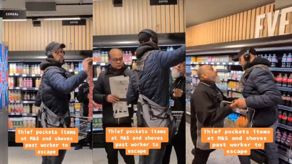 A video is getting a lot of attention on TikTok, courtesy of The Daily Star, of a thief openly stealing food, then shoving his way out of the store. What’s remarkable about the clip is that the shoplifter doesn’t even try to hide his thieving after he pockets item after item. When he’s confronted by a store employee, he just shoves his way out of the store.