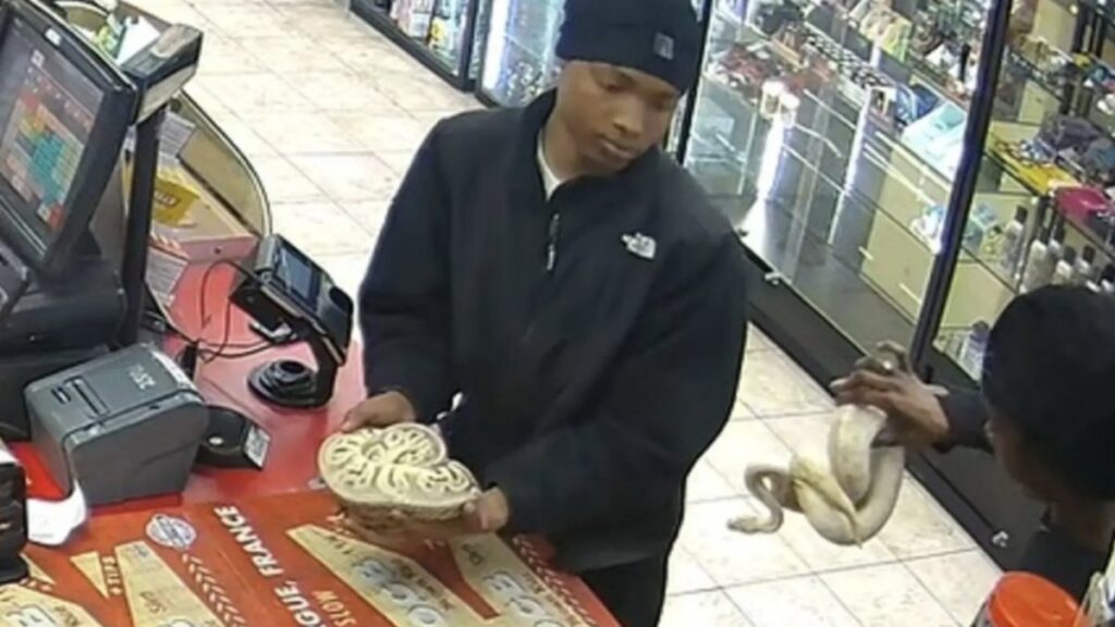 The footage, which 731 Crime Stoppers also shared, shows a man placing the snakes on the counter while an accomplice engages the cashier. The suspects fled the scene in a four-door sedan with a trunk tied with bungee cords before the police arrived.