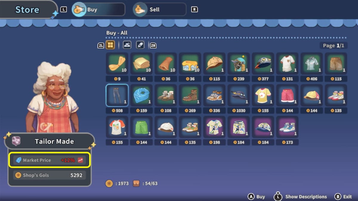Admittedly, this mistake is an easy one to make. One of the most under-explained features in My Time at Sandrock is how the shop prices can move above or below the town’s market price. In each shop’s menu, you’ll see a percentage highlighted in red or green to show how much their prices are above or below the standard market price. The prices can change by the day, so if you have your eye on a specific item but aren’t happy with the price, check back tomorrow – it might be better.