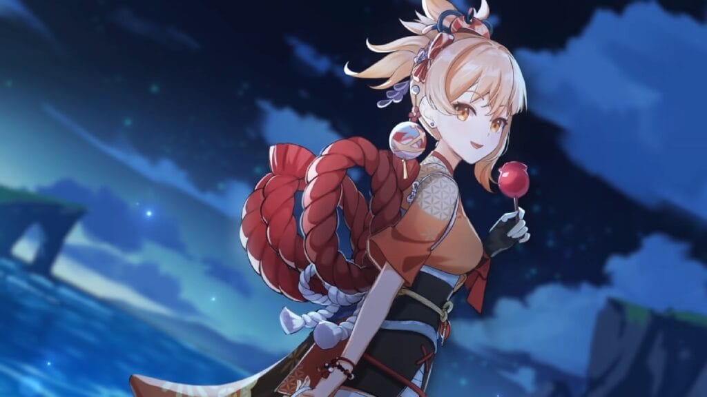 Yomiya is the current owner of Naganohara Fireworks on Narukami Island, a business she helped her father with for a long time. She’s an outgoing, colorful, and brave girl. She is helping to free the Traveler from prison at the beginning of his adventure in Inazuma, as Yoimiya was also against the Vision Hunt Decree. Whether it’s a celebration, festival, or to make others smile, Yoimiya will always have fireworks ready and a huge smile.