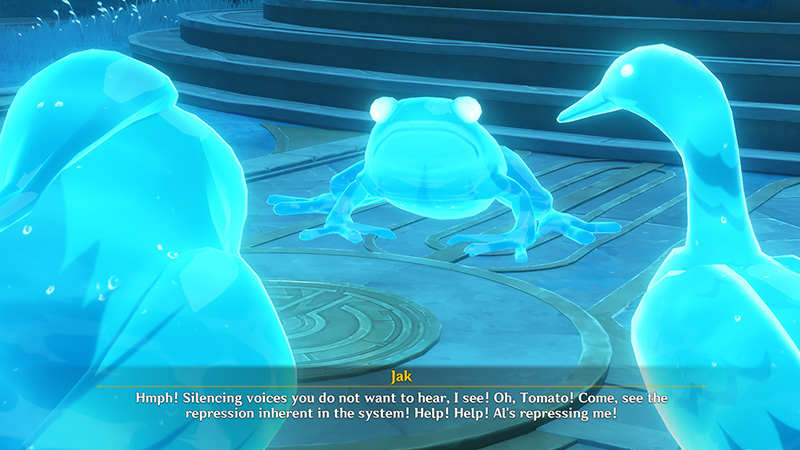 Finally, arguably the best Easter Egg in all of Genshin Impact 4.0 is a subtle nod to a classic Monty Python bit. When approaching a group of Oceanids, and listening to their dialogue, they begin arguing about the merits of governments. One of the Oceanids even exclaims, “Come see the repression inherent in the system! Help! Help! Al’s repressing me!” For those that don’t know, this is almost the same as a line from Monty Python and the Holy Grail. In this scene, a peasant exclaims, “Come see the repression inherent in the system! Help! Help! I’m being repressed!” As you can see, the two lines are too similar to be a coincidence. In the end, it seems like the translators were having a lot of fun with Genshin Impact 4.0 and Fontaine. Plus, it’s funny to think that the team is full of Monty Python fans.