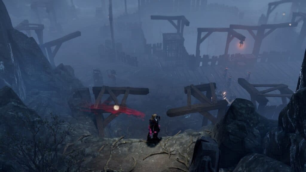 On the right side of the Sacred Silver Mine in V Rising, you can spot a rather rough and guarded pathway that leads to the side of the mines.