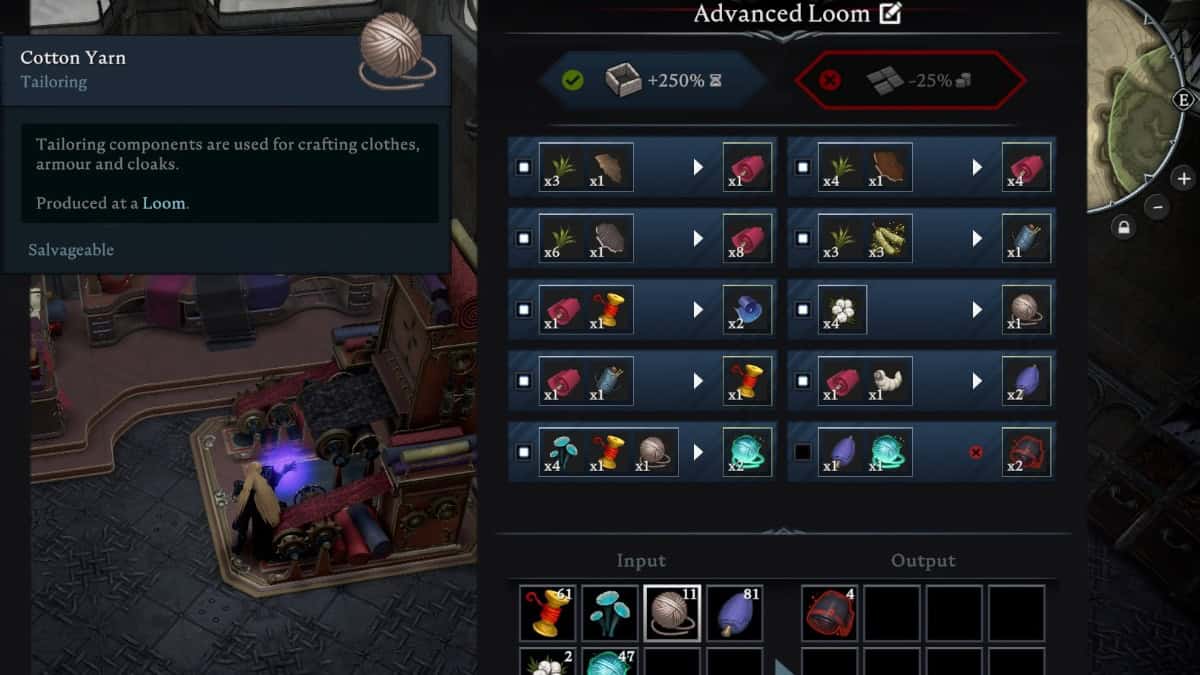 Cotton Yarn is an investment for your vampire. This is a crafting component that reaches well into endgame as it’s one of the recipes for an endgame material called Ghost Yarn.