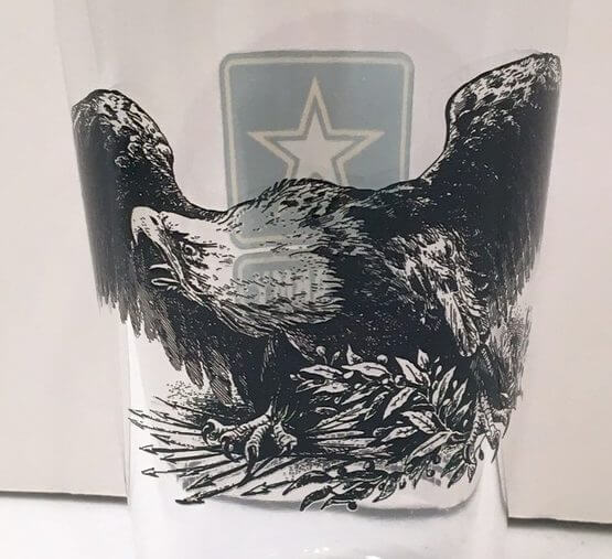 This U.S Army Pint Glass features their crest on one side and a bald eagle on the other.  A very nice glass!