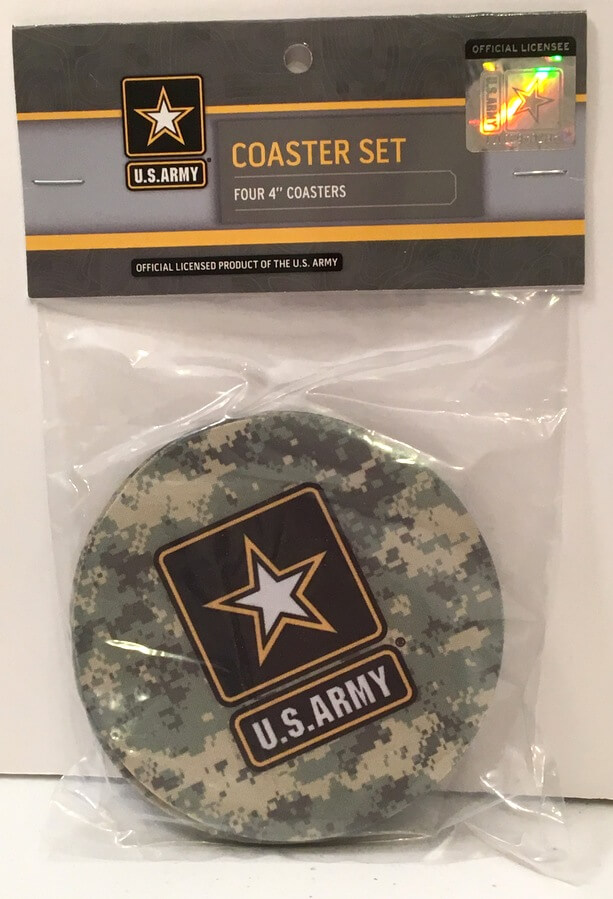 Everyone needs coasters, right? They have a rubber bottom to keep them from slipping and the camouflaged top shows the U.S. Army crest.