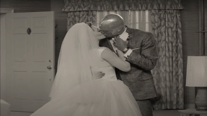 To say that there is a lot to reflect on from the trailer is an understatement. In the new footage, we’re treated to snaps of the titular characters in their accurate comic outfits – in a way; Wanda’s magic beyond red telepathy and telekinesis is further expanded upon; strange sequences of character interaction with a woman named Agnes (played by Kathryn Hahn) and a couple by the names of Mr. and Mrs. Heart (played by Fred Melamed and Debra Jo Rupp, respectively); and heartwarming moments of love and smiles being shared between Wanda and Vision.