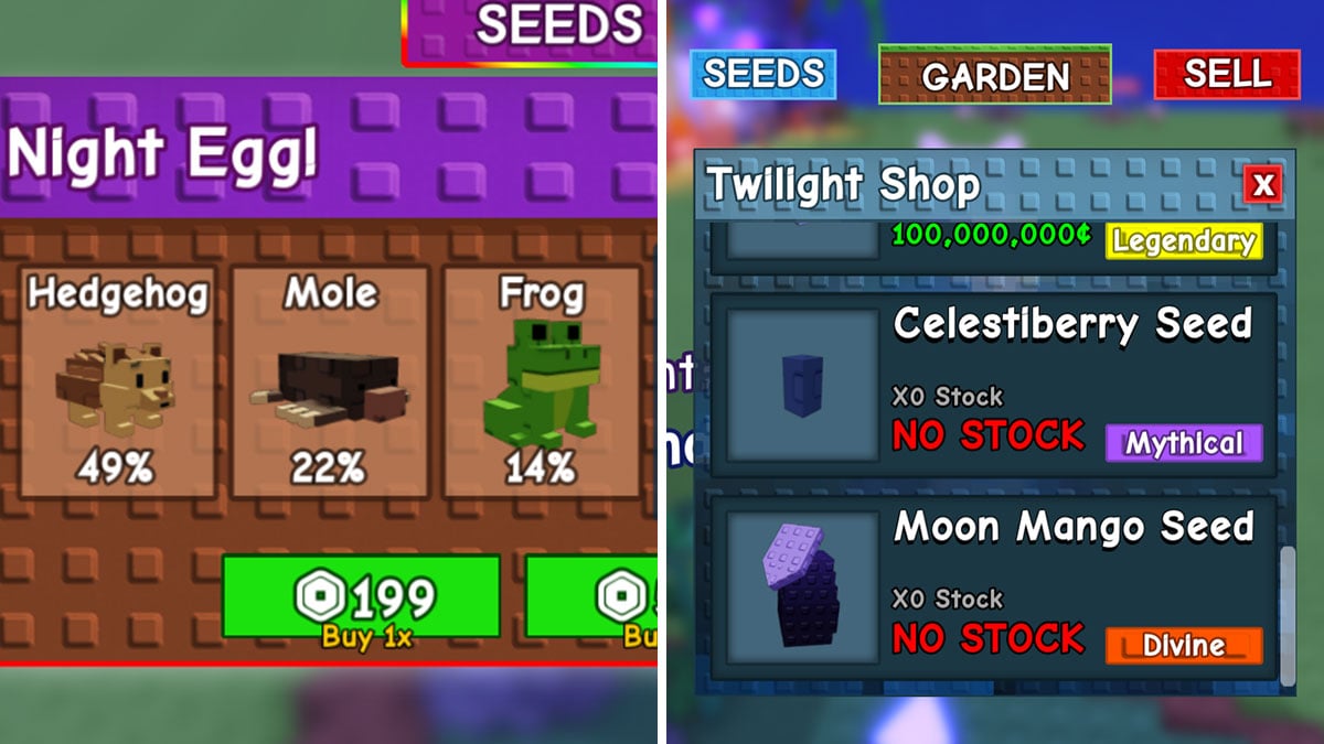 - Moon Mango (Lunar Glow Event): Originally sold at 200,000 Sheckles per fruit, it was temporarily nerfed to 40,000 but restored after community uproar. The seed can be obtained for a whopping 1,000,000,000 Sheckles or 999 Robux at the Twilight Shop.