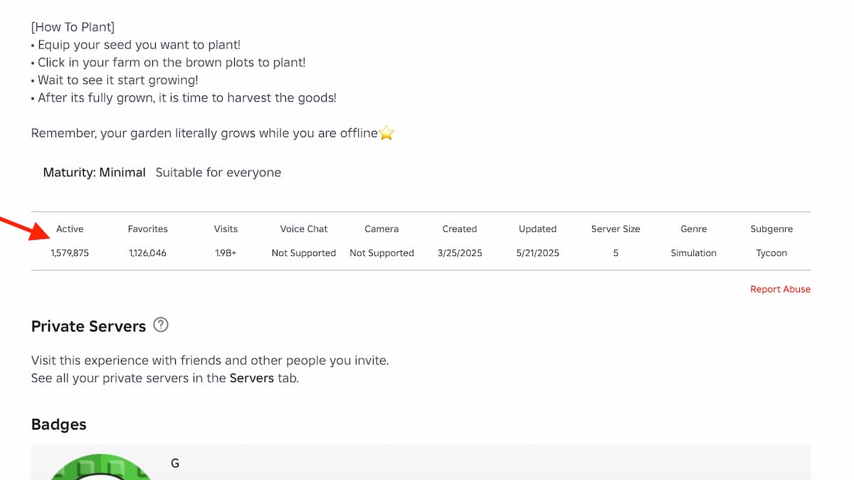 If you look at the game’s homepage on Roblox, you can see a few stats about the game, and these are categorised into the following: