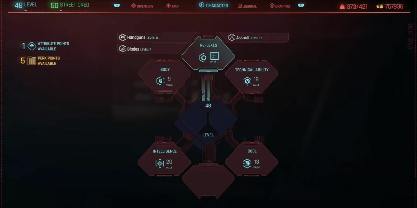 Leveling up in the game will enhance V’s combat skills, technological prowess, and more. These improvements are categorized into Body, Intelligence, Reflexes, Technical Ability, and Cool attributes. So you’ll want to make sure you manage V’s Skill Tree carefully.
