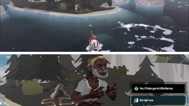 Go to one of the unnamed islands between Devil’s Spine and The Marrows. Look for “SOS” spelled out on a beach, and it’s there that you will find a Castaway. Speak with him and agree to take him to Little Marrow. If you can’t find him, look for L-10 on the map.