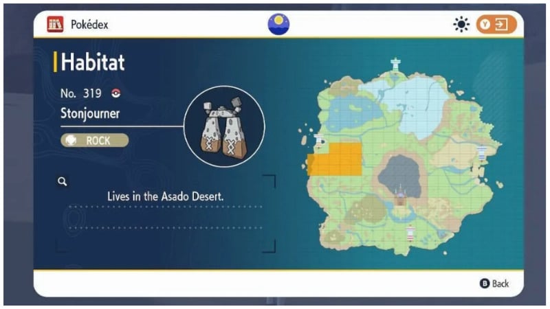 Even though Stonjourner is exclusive, this Pokemon is relatively easy to find. To catch Stonjourner in Pokemon Scarlet and Violet, you must go to Asado Desert in the western part of the game world. In addition, you should raise the level to 25-30. You won’t encounter Stonjourner earlier in the game, so make sure you complete this requirement before you go looking.