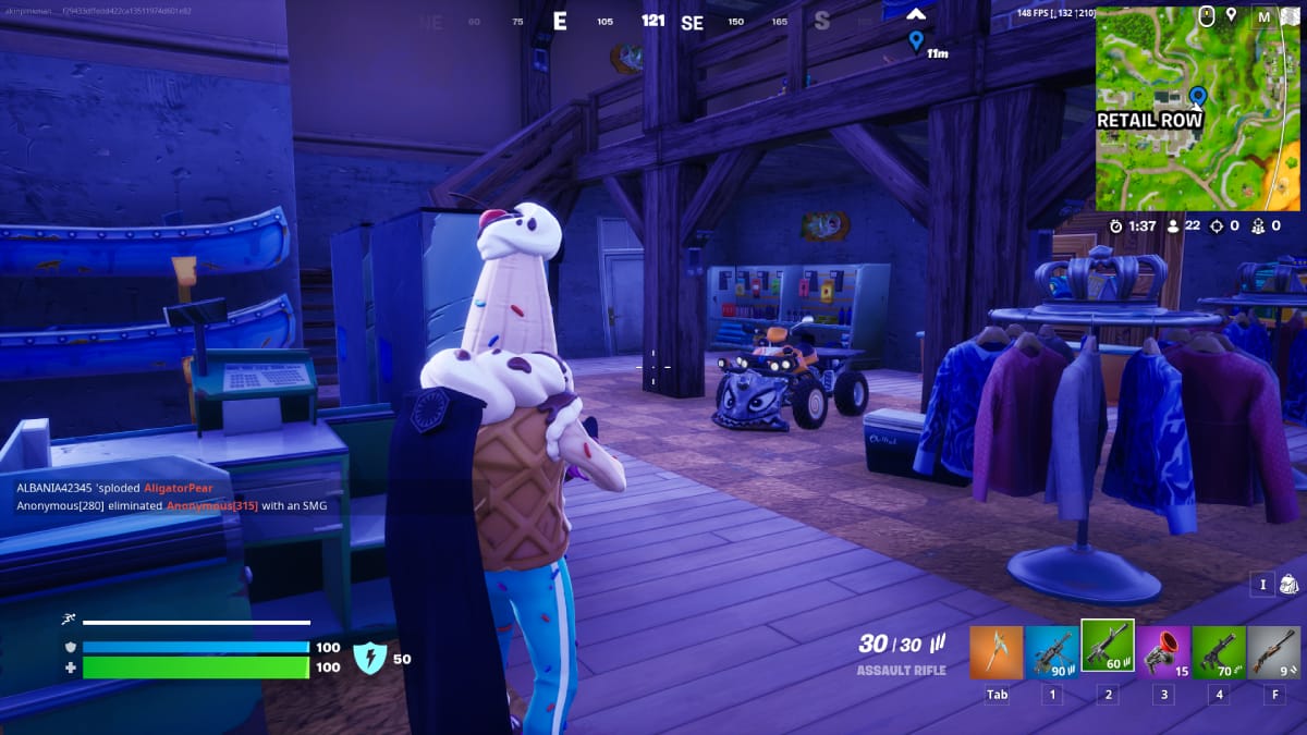 Retail Row is a crowded location as it is located in the center of the map and there are many buildings to loot. However, you can only find 1 Quadcrasher here in Fortnite.