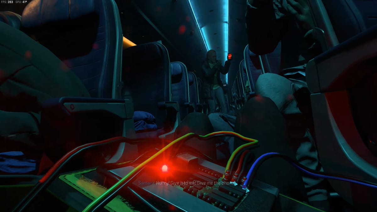 The bewilderment of the woman is interrupted by the barrel of a gun pointed at her by a man who is a member of the Makarov group. We probably don’t need to go into all the details, but regardless of your actions, Samara will lose consciousness from a flashbang grenade, after which she discovers she is wearing an explosive vest. Having thrown the activated detonator into the crowd of passengers, the villains jump with parachutes. At the same time, frightened passengers do not allow Samara to reach the detonator, mistaking her for a terrorist, after which an explosion occurs.