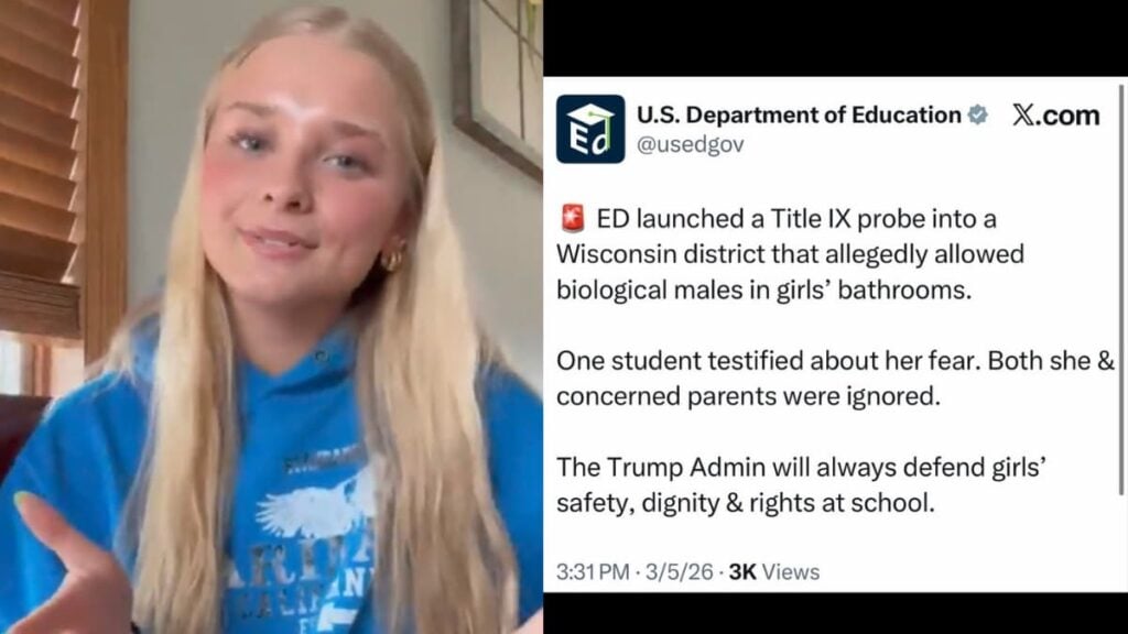 A lot of people were proud of the Wisconsin girl for speaking up about her discomfort. “Thank you for speaking up!” one person wrote. Another person said, “It’s sad that a student even has to thank the government for something so basic.” Someone else wrote, “81 yr old pissed off Army Vet grandpa here. [Expletive] right, Trump’s team is finally protecting our girls from this perverted nonsense in schools. No more weak-kneed policies—kick out the predators and enforce real boundaries!” Another commenter also said, “A high school student had to thank the federal government just to get basic privacy in girls’ bathrooms taken seriously. That tells you how far things went. Title IX was meant to protect women and girls. Restoring that common sense is long overdue.”