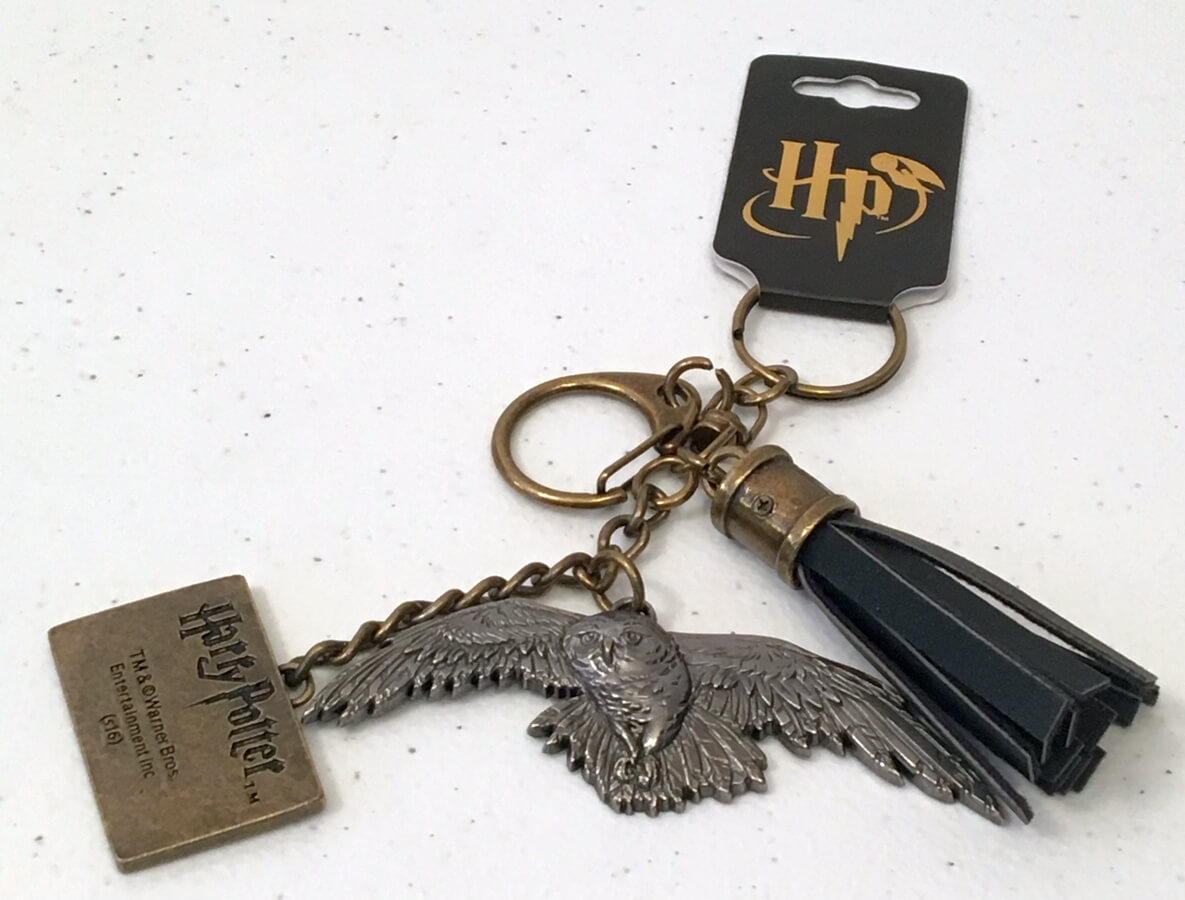 This is a cool keychain of Hedwig, Harry Potter’s Owl. It appears he is carrying a letter.