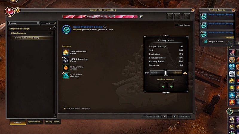 Now you know how to craft a Tiered Medallion Setting. However, adding Sockets to a Necklace is a little more complicated than it might seem. And as with real jewelry, you must follow certain rules to create a masterpiece. So, you should be aware that the Tiered Medallion Setting adds the Sockets to Necklaces depending on item quality in WoW Dragonflight: