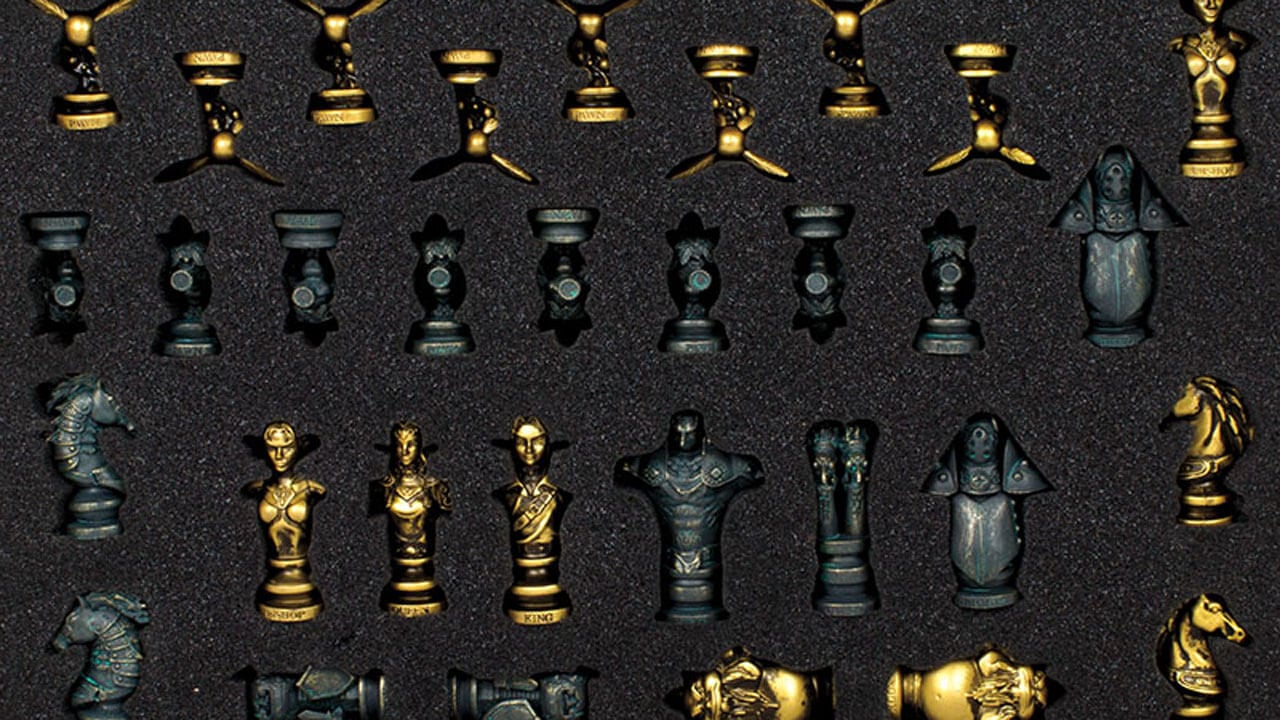 Game merchandise company and distributor Merchoid is preparing to release a Legend of Zelda: Ocarina of Time themed chess set. The pieces are made from vinyl and feature a metallic finish. Before reading who’s who, try scrolling down and identifying the pieces for yourself, then come back here and see how many you got right. Link and Zelda serve as the king and queen for their side, obviously. Impa appears as the bishops, Epona as the knights, Darunia as rooks, and Navi for the pawns. That’s a lot of listening. Opposing them, you have Ganondorf as the king, Twinrova playing the queen, and iron knuckles filling the role of bishop. Ganondorf’s horse rivals Epona as the evil knights while Armos statues act as rooks. For pawns, the king of evil employs a squad of deku scrubs.